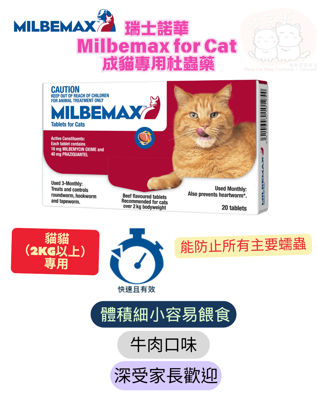 Milbemax for Cat 貓貓專用杜蟲藥能驅除貓貓體內常見寄生蟲,包括蛔蟲,鉤蟲和絛蟲等,還可預防心絲蟲!