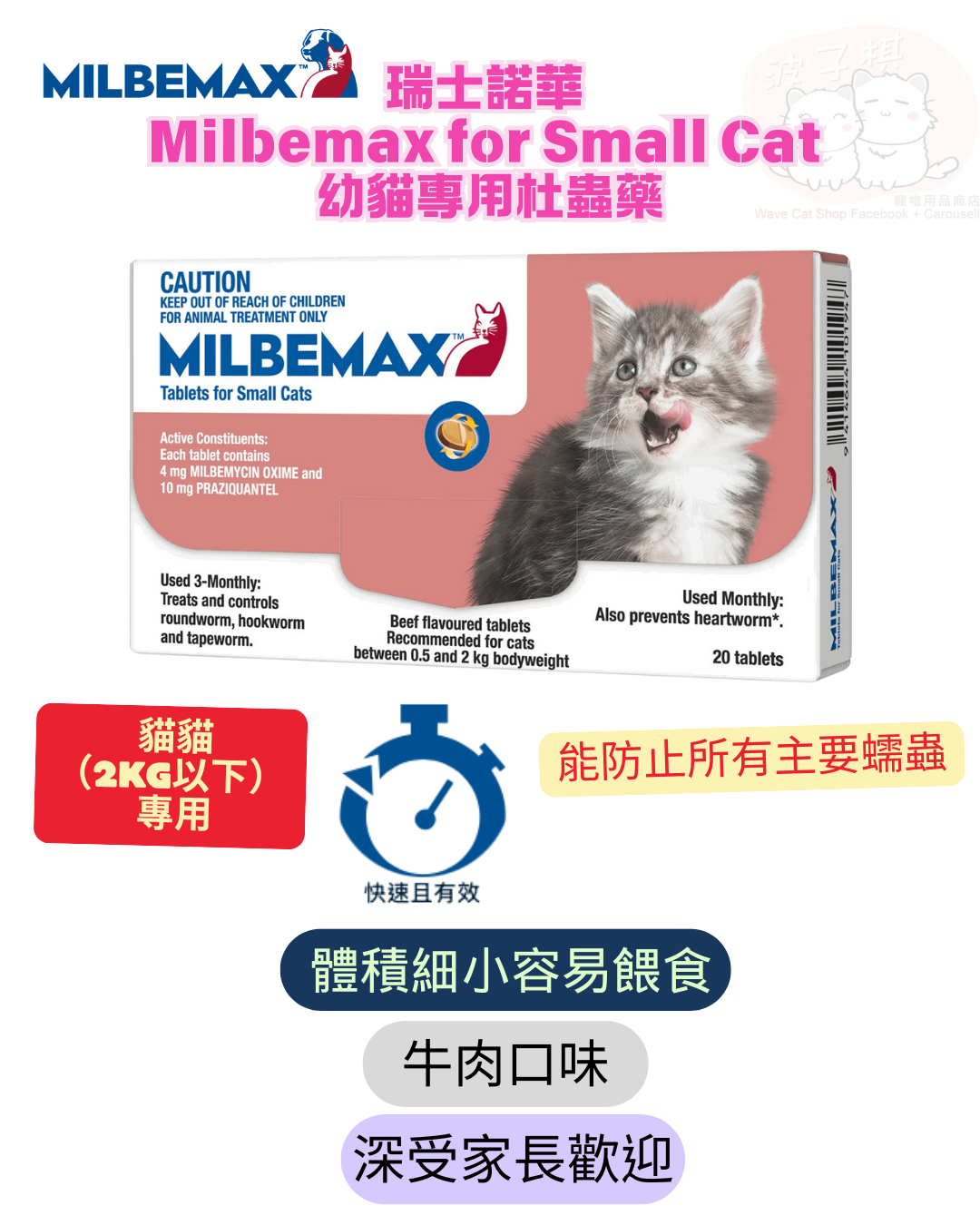 Milbemax for Cat 貓貓專用杜蟲藥能驅除貓貓體內常見寄生蟲,包括蛔蟲,鉤蟲和絛蟲等,還可預防心絲蟲!
