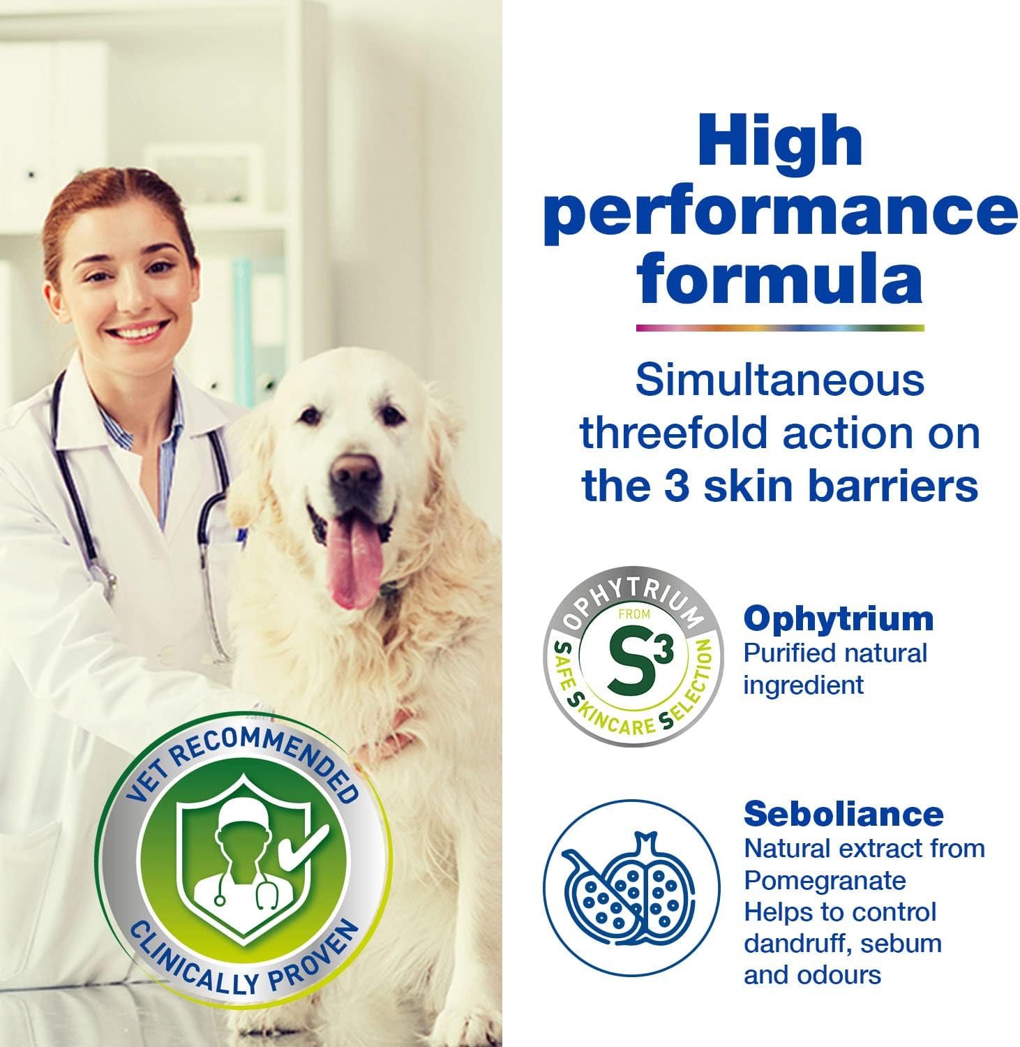 Douxo S3 Seb產品由獸醫推薦,並由皮膚科醫生專家獸醫開發和測試。 它們含有Ophytrium,這是一種獨家成分,具有舒緩、重新平衡和強化面板屏障的特性。 此外,它們還含有Seboliance,一種天然石榴提取物,有助於調節皮脂分泌,控制鱗片的形成,並防止酵母的增殖。