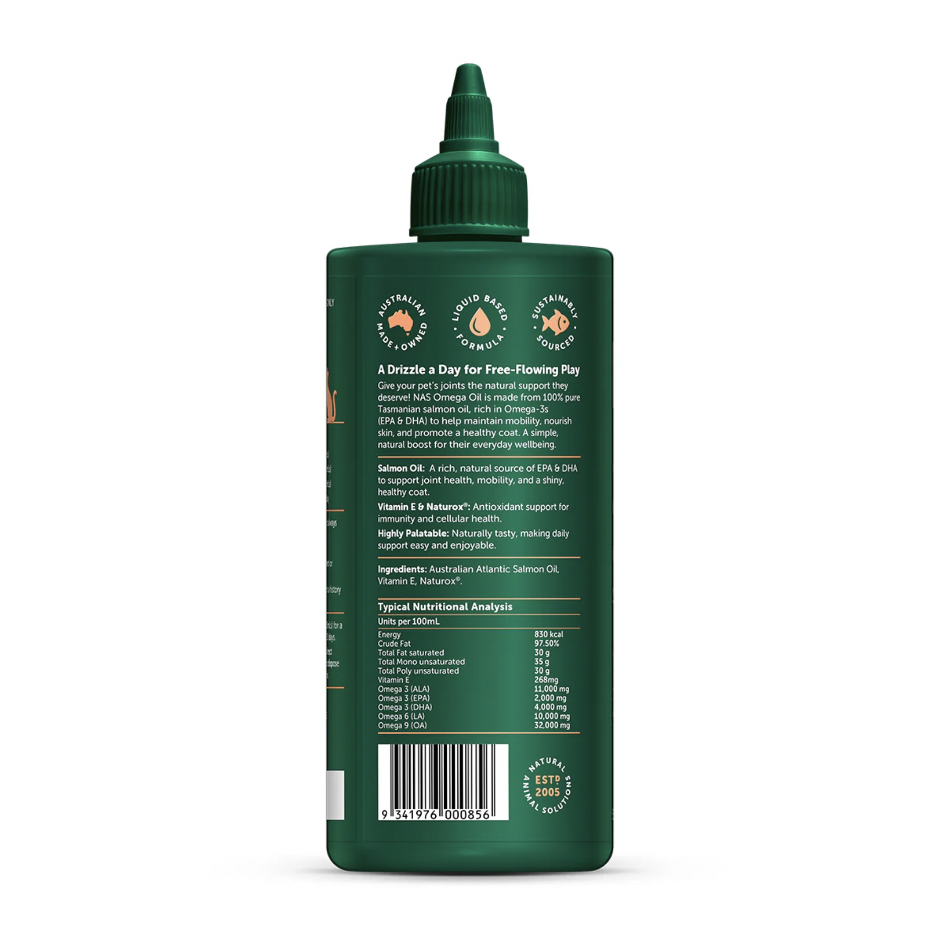 NAS Omega Oil不含人工新增劑和填充劑,提供純天然的營養,幫助您的寵物在各個年齡和階段茁壯成長。