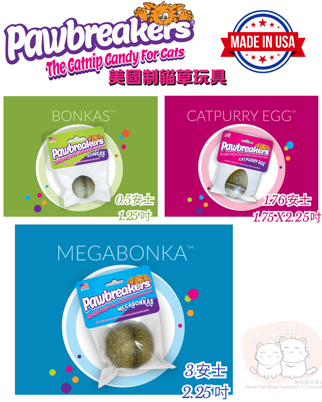 請每 2-4 周放縱一次您的貓,以獲得最大的收益和享受!我們強烈推薦每隻貓一隻 Pawbreakers® Bonkas™。美國進口Pawbreakers 全天然有機 貓草球玩具,貓貓至愛,食得又玩得