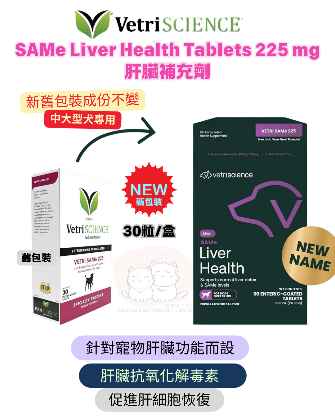 VetriScience - Vetri SAMe 225 肝臟補充品這是一款由獸醫推薦的犬用護肝保健品,專為維持狗狗肝臟的最佳健康及功能而設計,配方中的成分能被身體有效吸收及利用。