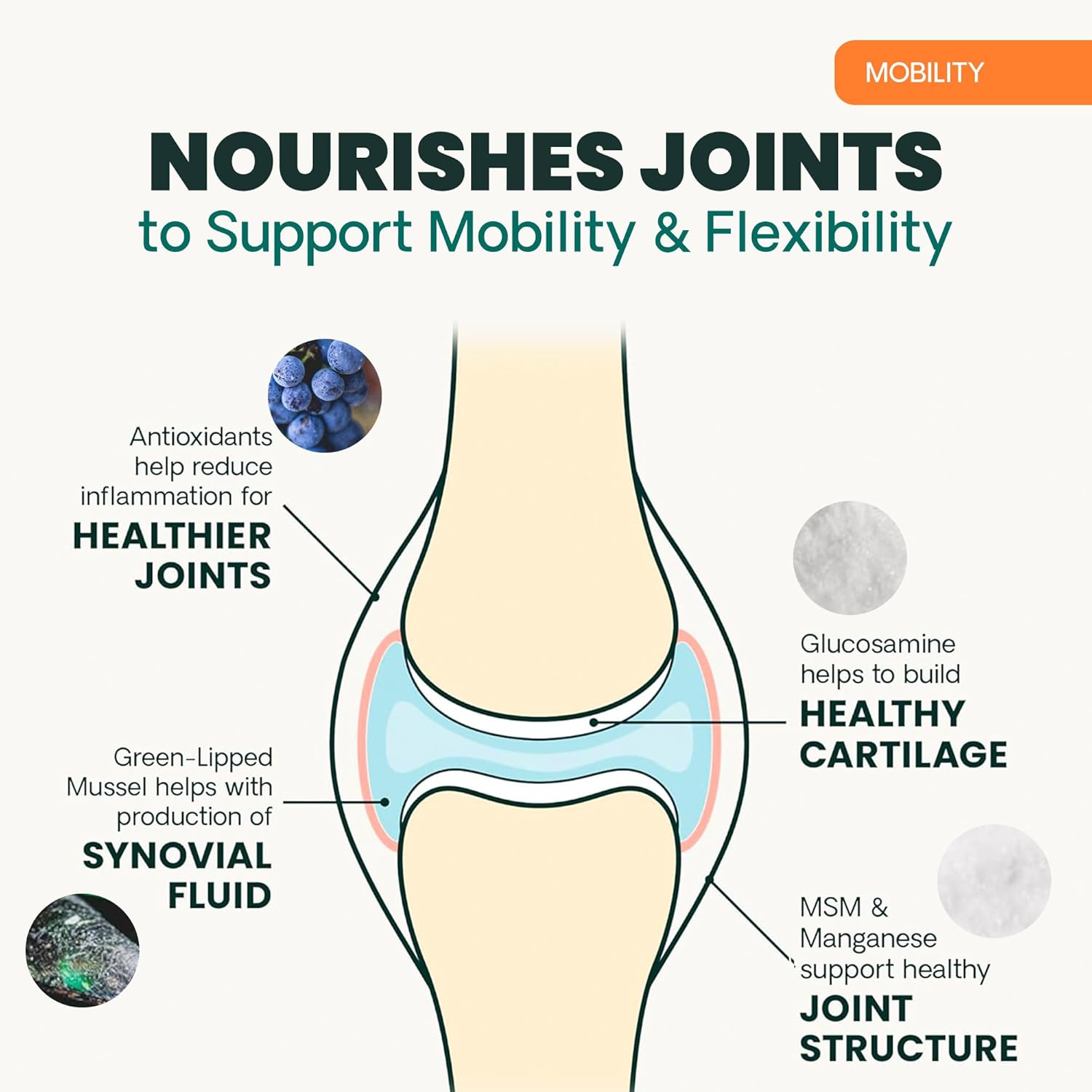 @MSM(甲基磺酰甲烷)是一種天然存在於狗體內的硫化合物,可支持關節和結締組織的結構,以及包括膠原蛋白合成在內的許多身體過程。錳還支持膠原蛋白的形成,這是最佳軟骨結構和完整性所必需的。