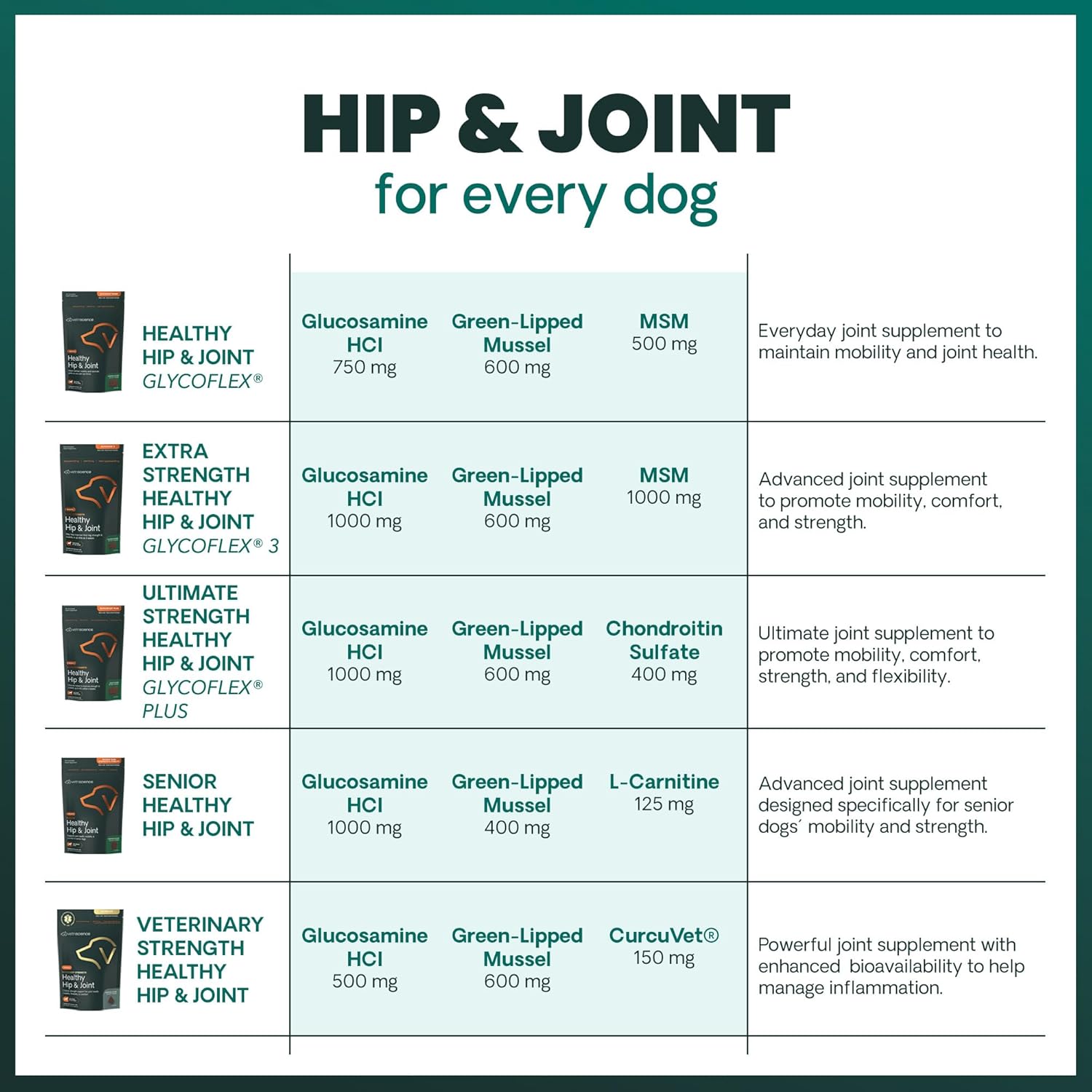 我們有成千上萬的滿意客戶,他們喜歡為他們的狗使用 GlycoFlex®,並看到了令人難以置信的效果。這是我們針對中型和大型犬的最強配方,由綠唇貽貝、葡萄糖胺和軟骨素製成。嘗試咀嚼花生醬、鴨肉和培根等美味佳餚!您的愛犬還可以享受GlycoFlex® Plus 咀嚼片